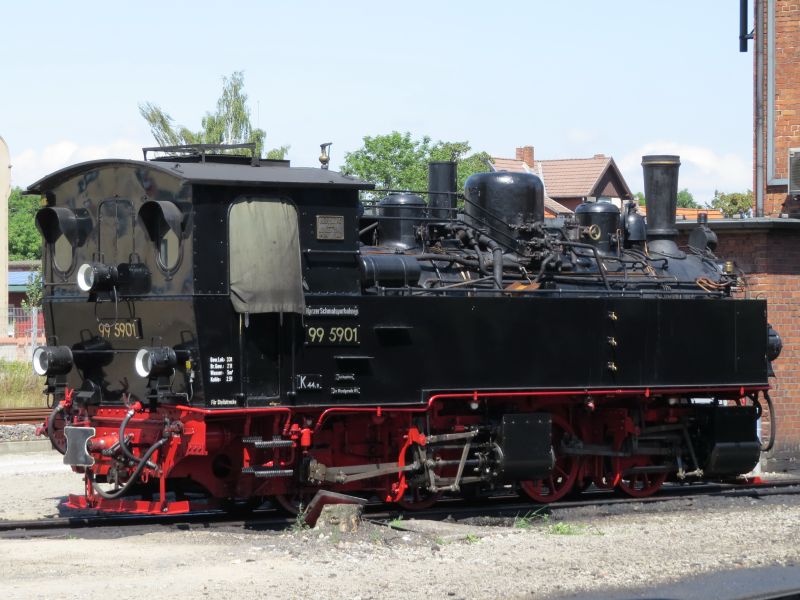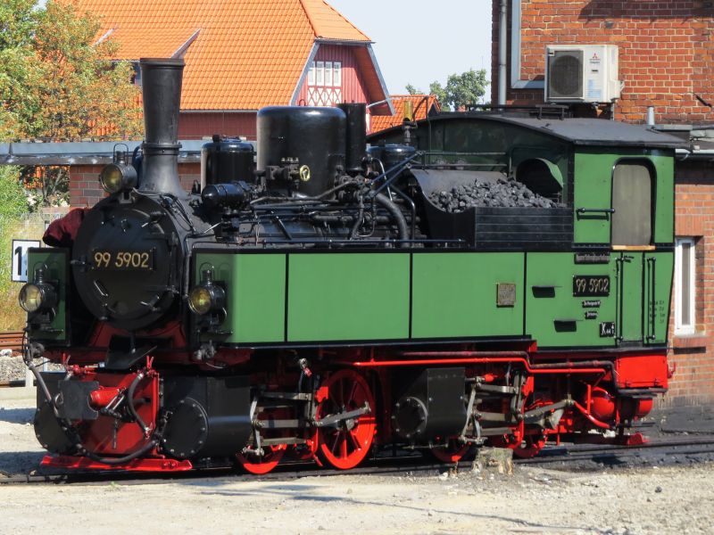 99 5902 08.09.2016 Wernigerode Bisher hatte ich sie immer nur im Schuppen gesehen, aber diesmal gab es einen Volltreffer. Im Gegenteil, sie stand fast allein im Bw und die Sonne kam auch von der richtigen Seite.