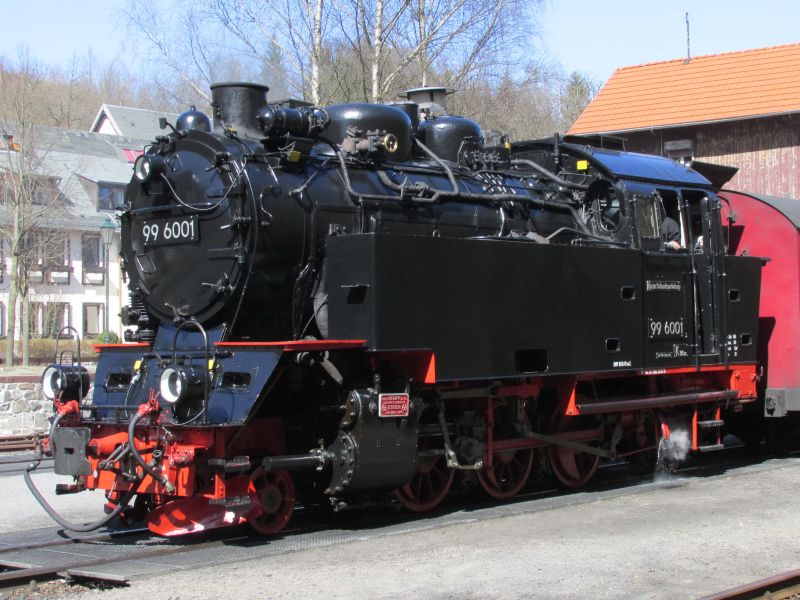 99 6001 ex NWE Nr.21 II 15.04.2015 Alexisbad Die Maschine kam 1956 von der Harzquerbahn zunächst testweise zur Selketalbahn, ab 1961 bekam sie diesen Job dauerhaft. Sie hat an diesem wunderschönen Tag unseren Zug von Gernrode über Stiege und Hasselfelde nach Eisfelder Talmühle gezogen. |