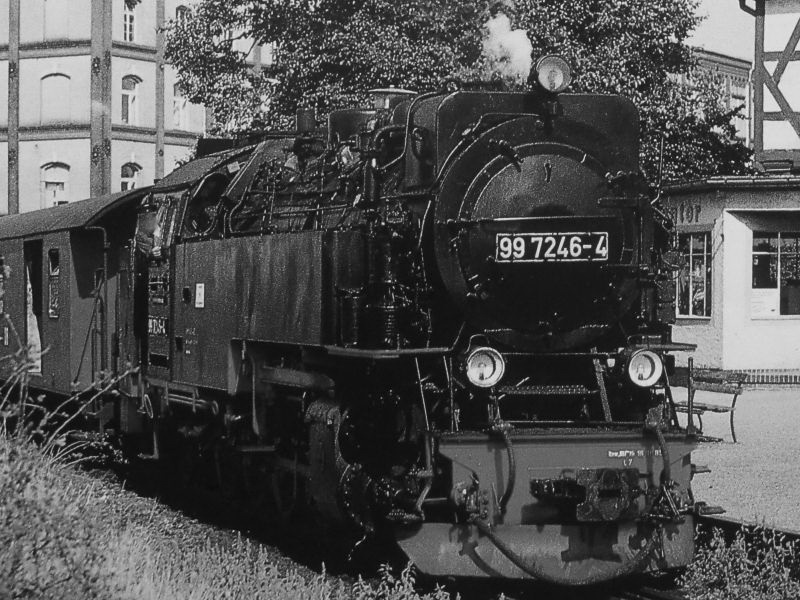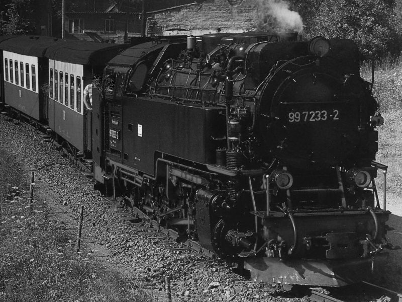 Seit 2004 ist es mir jedes Jahr mindestens einmal gelungen, mit einer Digitalkamera die Harzer Schmalspurbahnen zu besuchen oder gar zu benutzen. Die bisherigen hier veröffentlichten Aufnahmen stammen alle aus dieser Zeit. Inzwischen bin ich bei der Digitalisierung meiner Papierfotos aus der "guten, alten Zeit" entschieden vorangekommen. Das betrifft sowohl das "Wiederfinden" wie auch die Art der Digitalisierung. Die alten Aufnahmen gelangen in den Jahren 1973 bis 2001 mit Beirette electronic, EXA 1C bzw. Pentacon MTL 5B jeweils auf Schwarz-Weiss-Kleinbildfilm und wurden in der Regel selbst entwickelt und abgezogen. Bei einigen Aufnahmen verursacht die verwendete Papierqualität heute nahezu körperliche Schmerzen. Manchmal ließ sich bei der digitalen Nachbearbeitung noch ein bisschen was machen . . .