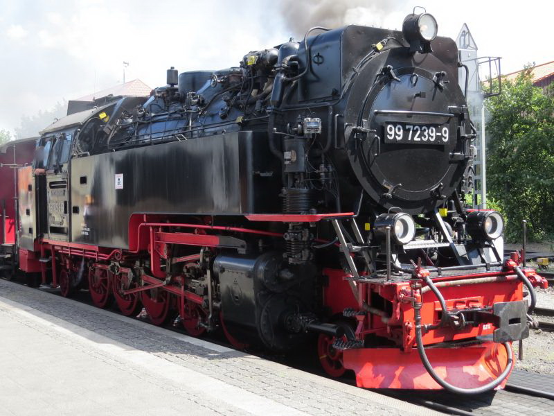 99 7239 ex 99 239 II 08.08.2016 Wernigerode Endlich kann ich die jahrelang hier gezeigte "verhuschte" Aufnahme einer Vorbeifahrt an dieser Lok ersetzen. Der erfolgreiche Tag mit 4 Neulingen in meiner Sammlung brachte mir auch eine schöne sonnige Porträtaufnahme der 99 7239. Die Lok gehört zu den nach 2004 rekonstruierten Maschinen. |