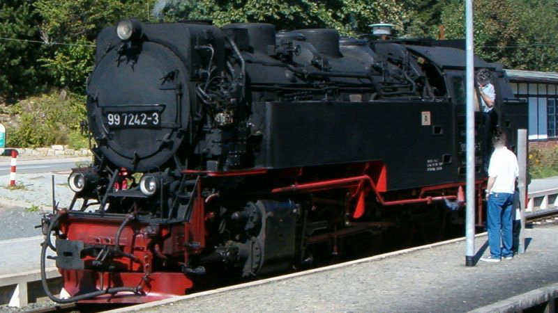 99 7242 ex 99 242 II 02.09.2004 Drei Annen Hohne Sie hatte mich von Eisfelder Talmühle hierher gebracht und wurde jetzt für die Weiterfahrt nach Wernigerode durch 99 7241 ersetzt. Aktuell (2015) im Lokschuppen Benneckenstein abgestellt wegen Fristablauf.