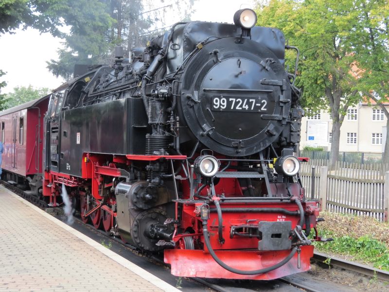 99 7247 ex 99 247 II 08.08.2016 Wernigerode Westerntor Nach dem ich in verschiedentlich davon gelesen hatte, dass diese Lok entweder abgegeben oder abgestellt ist, was mich nicht gewundert hätte, da sie mir ja nie vor die Linse gekommen war, ist dies für mich doch eher eine überraschende Begegnung gewesen. Ich habe sie sowohl in Wernigerode wie auch in Wernigerode Westerntor gut "erwischt". Die Lok gehört zu den nach 2004 (2012) rekonstruierten Maschinen. |