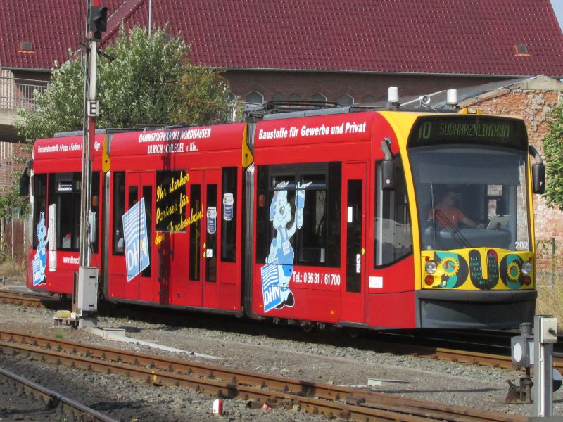 Combino Duo 202 (intern 187 202) 15.09.2016 Nordhausen Nord Endlich ist es mir auch gelungen den 202er vernünftig auf ein Foto zu bekommen. Diesmal reichten ein 25-minütiger Umsteigeaufenthalt in Nordhausen und etwas Glück. |