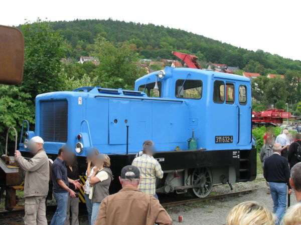 311 632 ex 101 632 ex 101 174 ex V15 2074 Bw Meiningen 06.09.2008 Sie wurde 1962 durch LKM gebaut und befindet sich seit ihrer Ausmusterung bei der DB AG am 29.03.1994 als Werklok im Dampflokwerk Meiningen. |