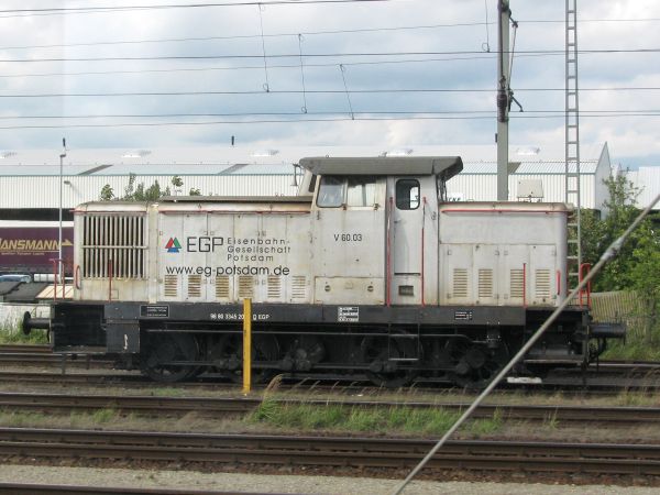 EGP V 60.03 (345 205) ex Railogic V60.01 ex Zementwerk Rüdersdorf 7 Fallersleben 30.08.2011 Diese V60D wurde 1969 bei LEW gebaut und ist seit damals im "nichtstaatlichen" Einsatz. |