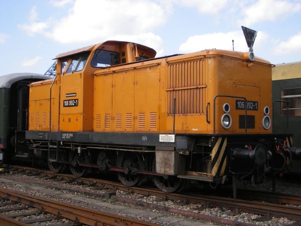 346 992 ex 106 992 SEM Chemnitz-Hilbersdorf 14.09.2007 Im Jahr 1975 durch LEW gebaut kam diese Lok am 01.01.1994 von der DR zur DB AG, wo sie am 05.09.1996 ausgemustert wurde. |