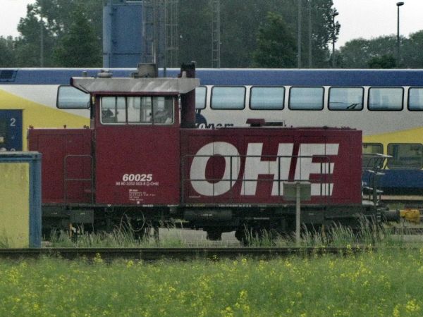 (352 003) MaK G322 OHE Uelzen 16.05.2011 Ich habe sie dort schon oft stehen sehen, aber diesmal ist sie auf dem Foto auch noch inklusive ihrer Beschriftung zu erkennen und das, obwohl das Foto aus dem fahrenden Metronom heraus aufgenommen wurde. |