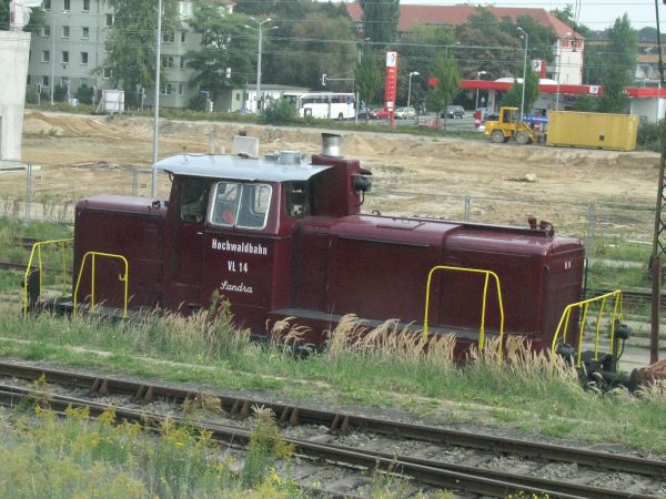 Hochwaldbahn VL 14 "Sandra" ex 361 663 ex 261 663 ex V60 663 Leipzig Hbf 12.09.2008 Sie wurde 1959 von MaK ausgeliefert. In Hagen erfolgte am 10.10.2002 ihre Ausmusterung. Das Bild entstand auf der Fahrt von Leipzig nach Halle im Vorfeld des Leipziger Hauptbahnhofs. |