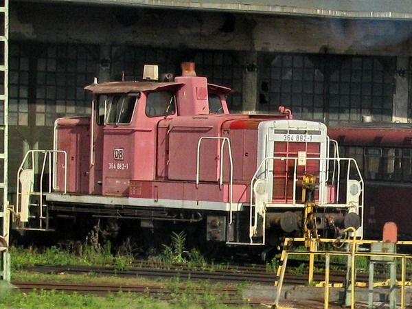 364 882 Lichtenfels 07.06.2012 Auch hier eine Aufnahme, die eine Baureihenlücke geschlossen hat. Meine erste von aktuell zwei 364ern und das auf der wohl vom Verkehrsmuseum Nürnberg genutzten Abstellfläche im ehemaligen Betriebswerk des Bahnhofes Lichtenfels. |