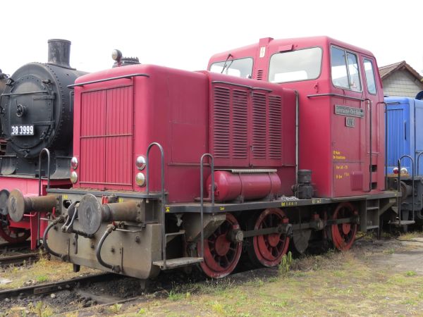 Kö 1002 Darmstadt-Kranichstein 15.07.2015 Die Lok wurde 1940 gebaut und startete bei der Wehrkreisverwaltung IX Heeresbauamt II Gießen ihre Laufbahn. |