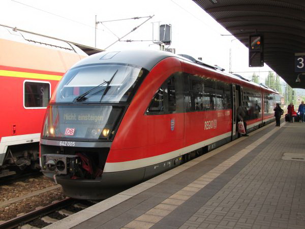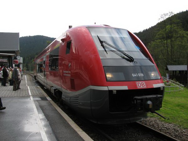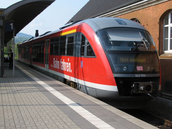 (642 004_504) Die Abfahrtszeit des Regionalexpresses von Saalfeld über Arnstadt nach Erfurt liegt so weit nach der Ankunft in Saalfeld, dass sich noch einige andere Bilder ergeben haben, die sich gut in meiner Sammlung machen. Letztendlich wurde es dann aber doch Zeit zum Einsteigen und pünktlich ging es los nach Rottenbach.
