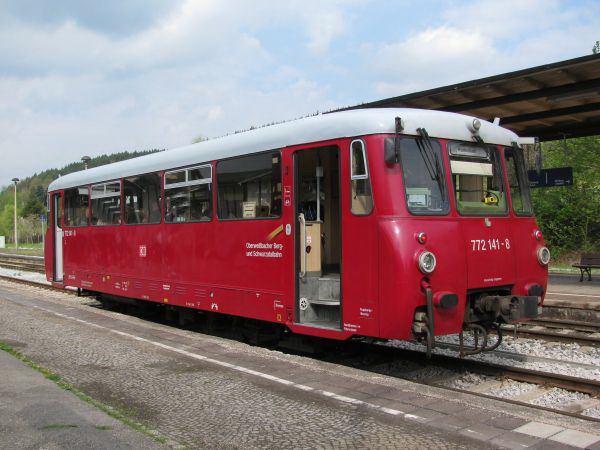 Oberfelderschmiede (772 141) Eine angenehme Überraschung erwartet die Fahrgäste in Rottenbach. Die historische Ferkeltaxe fährt an diesem Tag jeden zweiten Zug zwischen Rottenbach und Katzhütte. Es war zwar ein wenig eng im Zug, aber die Älteren werden sich erinnern, man kann es aushalten. Rottenbach liegt am nördlichen Rand des Thüringer Waldes im Landschaftsschutzgebiet Rinne-Rottenbachtal. |