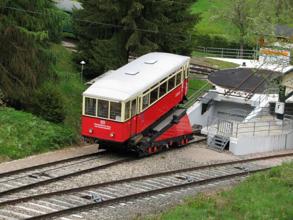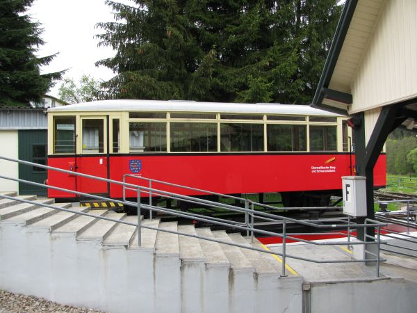 Bevorzugte Variante des Auf- und Abstiegs Alle Fahrten auf der Bergbahn fanden zufälligerweise mit diesem Wagen statt. Einmal war es sogar eine "Privatfahrt", was sowohl eine interessante Unterhaltung wie auch sehr schöne Fotomöglichkeiten zur Folge hatte. |