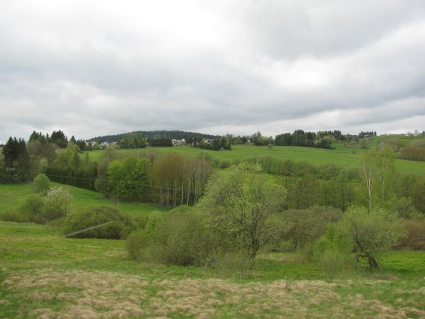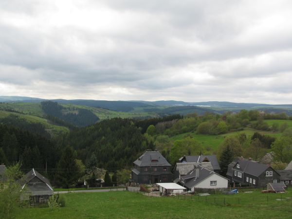 Blick zum Ziel in Richtung Cursdorf Die letzten Stückchen der Flachstrecke führt dann noch in den zwischen 700 und 750 Meter Höhe gelegenen Ort Cursdorf zwischen Schwarzatal und Rennsteig. |