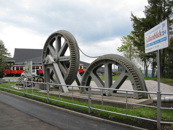 Im Umfeld der Bergstation Lichtenhain sind verschiedene Exponate ausgestellt, die im Zusammenhang mit der Lichtenhainer Waldeisenbahn stehen. |