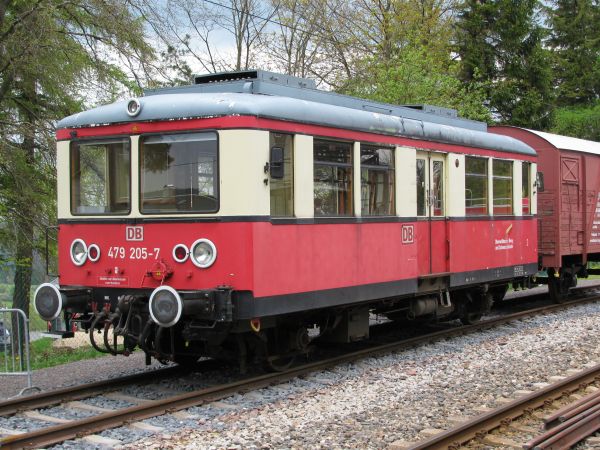 Der Dritte im Bunde Ich habe keinen Plan, in wieweit 479 205 noch einsatzbereit ist, zumindest äußerlich unterscheidet er sich von seinen beiden Kollegen doch deutlich. Außerdem war weit und breit kein Stromabnehmer zu entdecken. |