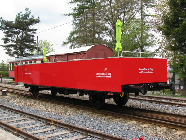 Die leere Güterwagenplattform Ich nutzte die Gelegenheit noch einmal, einen der seltenen Blicke auf die leere Güterplattform zu werfen. Da der Plan war, bei der Fahrt nach der mit dem Güterwagen ins Tal zu fahren und somit die Begegnung zu fotografieren (siehe oben), war dies für mich die letzte Gelegenheit für diese Aufnahme. |
