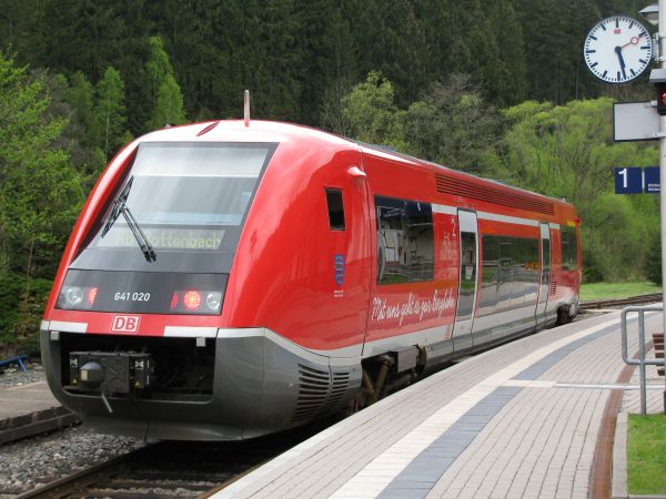 (641 020) Die Heimreise am Mittwochabend begann in Katzhütte mit dem zweiten 641er der Schwarzatalbahn, 641 020, gefolgt von 641 035 auf der Strecke von Rottenbach nach Saalfeld. Bei relativ freundlichem Wetter gab es noch reichlich Gelegenheit für stimmungsvolle Bilder aus dem Schwarzatal. Je näher es nach Saalfeld ging, desto größere Wolkenlücken ließen noch eine schöne Abendsonne erscheinen. |