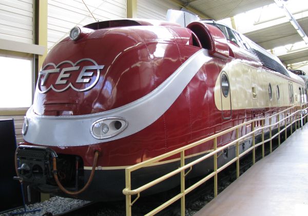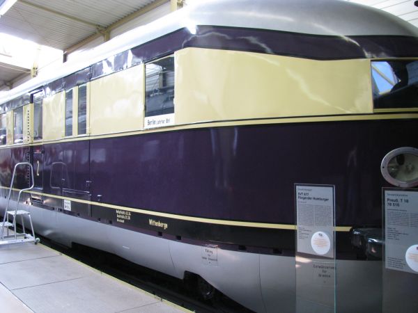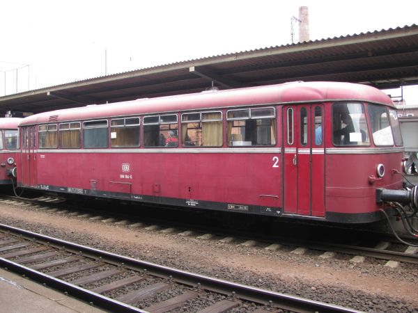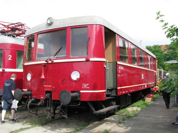 SVT 877 VM Nürnberg 10.05.2008 Er wurde 1932 bei der WUMAG in Görlitz gebaut und von Berlin aus eingesetzt. Bei der DB erfolgte der Einsatz unter der Bezeichnung (S)VT 04 000. Am 29.06.1957 erfolgte die Ausmusterung. Im Verkehrsmuseum Nürnberg wird er verkürzt präsentiert. |