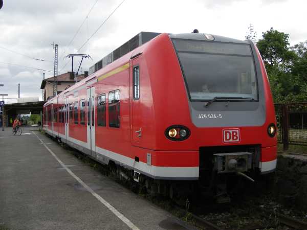 426 034 Murnau 15.05.2007 Die Baureihe 426 hat die durch den Einsatz der Baureihe E69 bekannt gewordene Strecke von Murnau nach Oberammergau übernommen. Im Vergleich zu meinen Erfahrungen mit den 425ern, waren das regelrechte Flüsterfahrten. Acht Jahre später begegnete mir genau dieses Fahrzeug in Würzburg. Die Anschriften deuteten auf die Fahrziele Bamberg und Treuchtlingen hin. |