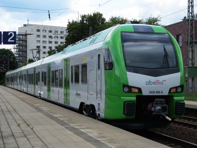 A Abellio Jena Saalbahnhof 13.06.2019 Eine überraschende Durchfahrt an einem ansonsten langweiligen Nachmittag. Diese Fahrzeuge sind ab Dezember 2019 zum Einsatz bei der S-Bahn Rhein-Ruhr im Verkehrsverbund Rhein-Ruhr vorgesehen. Der Vertrag wird zusammen mit Keolis realisiert. |