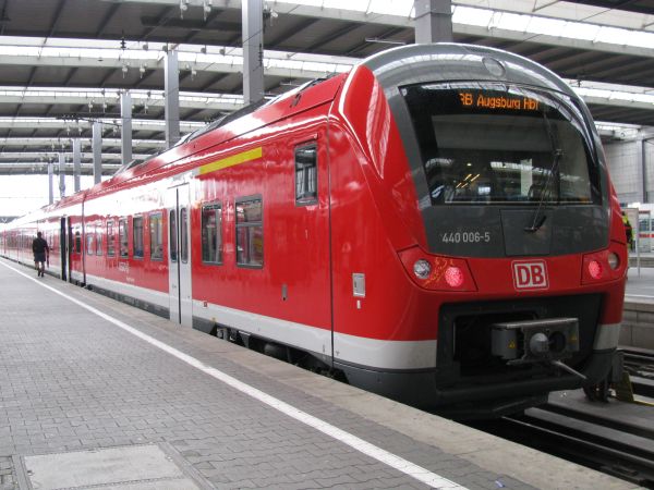 440 006 München Hbf 25.07.2009 Der jetzt als "Fugger-Express" zwischen München und Augsburg bezeichnete Zug brachte ein neues "Gesicht" in den Münchener Hauptbahnhof. |