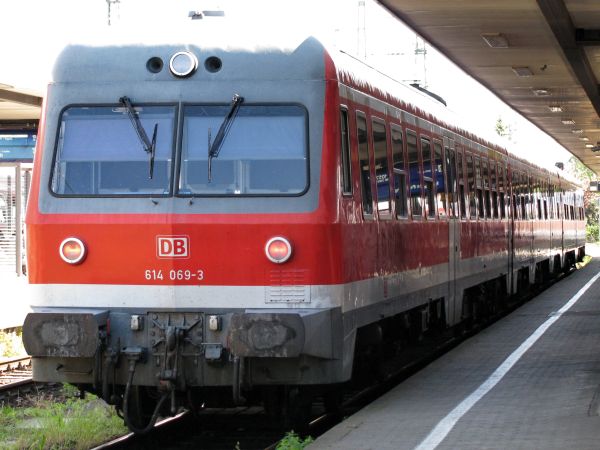 614 069/70 Nürnberg Hbf 10.05.2008 Hier will die Einheit noch nach Neuhaus (Pegnitz), bereits ein Jahr später (August 2009) steht sie mit einer ganzen Reihe anderer 614er in Cottbus Hbf auf den Abstellgleisen. |