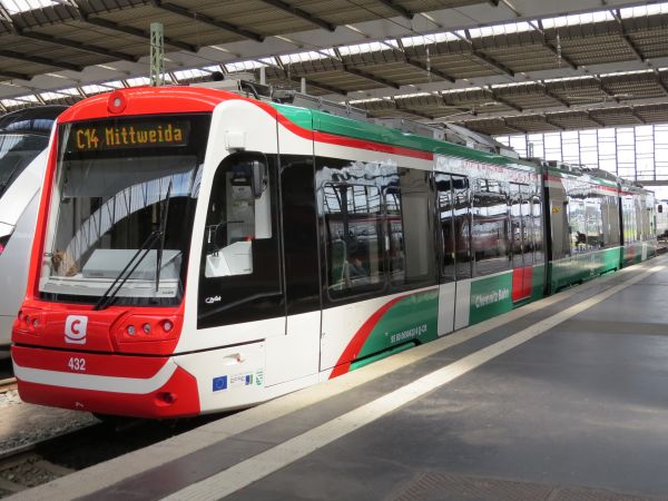 690 432 Niederflur-Zweirichtungsfahrzeuge mit Gleichstrom-/Diesel-Antrieb Chemnitz Hbf 20.06.2016 Zum Zeitpunkt der Aufnahme erfolgte der Passagierbetrieb der bislang 3 ausgelieferten Fahrzeuge wegen fehlender Zulassung nur im Eisenbahnbetrieb. |