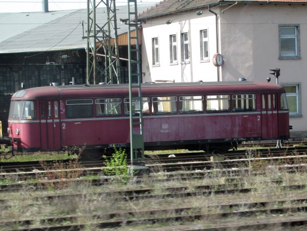 796 829 ex VT 98 9829 Bebra 01.05.2010 Nur eine Woche nach dem 795er ging mir nun auch noch der Rest der Familie ins Netz. Hier sehen wir eine 1962 von MAN gebaute Maschine, die am 28.02.1995 in Gießen ausgemustert wurde. Sie bildete in Bebra an diesem Wochenende das eine Ende der 5-teiligen Schienenbus-Flotte.
