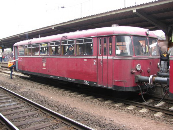 798 589 ex VT 98 9589 Bebra 01.05.2010 Am anderen Ende führte diese bei WMD im Jahr 1956 gebaute Maschine den Sonderzug zum Dampftreffen in Bebra an. Für sie endete der reguläre Einsatz bei der DB am 30.06.1996 in Gießen.
