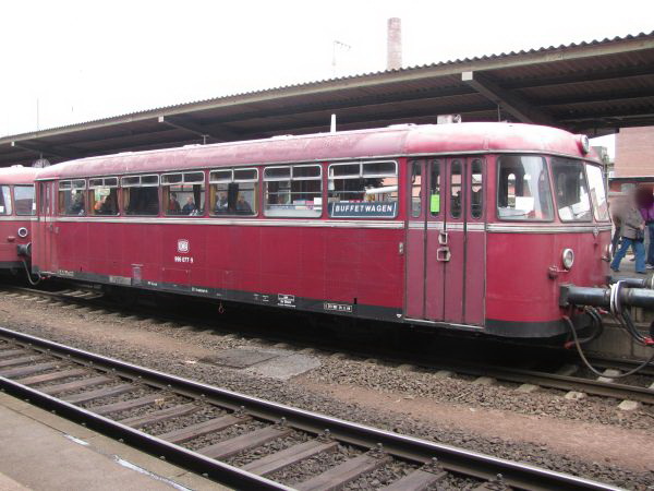 996 677 ex VS 98 077 ex 998 677 Bebra 01.05.2010 Und hier sehen wir einen echten Uerdinger, gebaut im Jahr 1959. Das Buffet hatte man in diesem ehemaligen Steuerwagen untergebracht. Seine Ausmusterung bei der DB erfolgte ebenfalls in Gießen, am 30.06.1996.