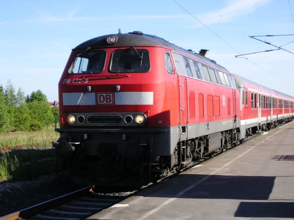 Nach einem sehr zeitigen Frühstück in der Pension folgte der kurze Marsch zum Bahnhof Murnau und bereits gegen 08:30 Uhr kam aus München 218 472 mit einigen ehemaligen Silberlingen, um die Tour zur Zugspitze und nach Garmisch-Partenkirchen zu starten. Der Einsatz der 218er auf der Werdenfels-Bahn war wohl eher eine Ausnahme, denn während der Urlaubstage waren, wie auch am frühen Abend bei der Rückreise, eher Lokomotiven der Baureihe 111 im Einsatz. Inzwischen gibt es aber auch hier die roten Hamsterbacken der Baureihe 442. |