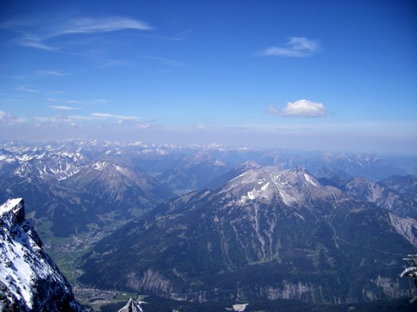 Dieser Tagesausflug zur Zugspitze fand anlässlich eines Urlaubs in Bayern im Jahr 2007 statt. Das Bahnticket vom Urlaubsort Murnau nach Garmisch-Partenkirchen brachte immerhin einen 5-Euro-Rabatt beim Ticket für die Zugspitzbahn ein. Die Tour an diesem Mai-Sonntag war Ergebnis einer nach einem Wetterbericht vom Vorabend durchgeführten Umplanung. Ursprünglich war die Zugspitz-Tour für den folgenden Dienstag geplant worden. Das wäre ungünstig gelaufen, denn da gab es plötzlich nochmals knapp einen halben Meter Neuschnee. An diesem Sonntag waren das Wetter und die Fernsicht einfach genial und das Frühlingsfest bei sommerlichen Temperaturen am Nachmittag in Garmisch ließ fast daran zweifeln, dass zwei Tage später nochmals eine heftige Ladung Schnee kommen wird.