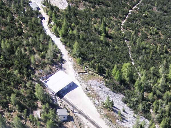 Ein kleiner Blick zurück zeigt wenige Meter von der Station Riffelriß entfernt das Tunnelportal der Einfahrt unter die Zugspitze. Leider gab bei dieser knapp 10-minütigen Talfahrt nicht den kleinsten Blick auf ein Fahrzeug der Bayerischen Zugspitzbahn zu erhaschen. |
