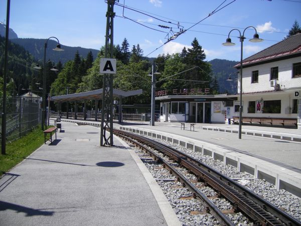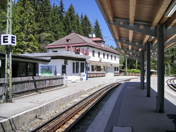 Auf der Fahrt nach oben war Eibsee "nur" eine Durchgangsstation. Bei der Rückfahrt ging es bis Eibsee mit der Seilbahn und erst hier wieder in den Zug. |