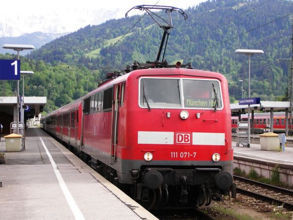 Nach mehreren Stunden Stadtrundgang in Garmisch-Partenkirchen und einem Besuch bei den Skisprungschanzen ging es am frühen Abend mit 111 071 zurück nach Murnau. |